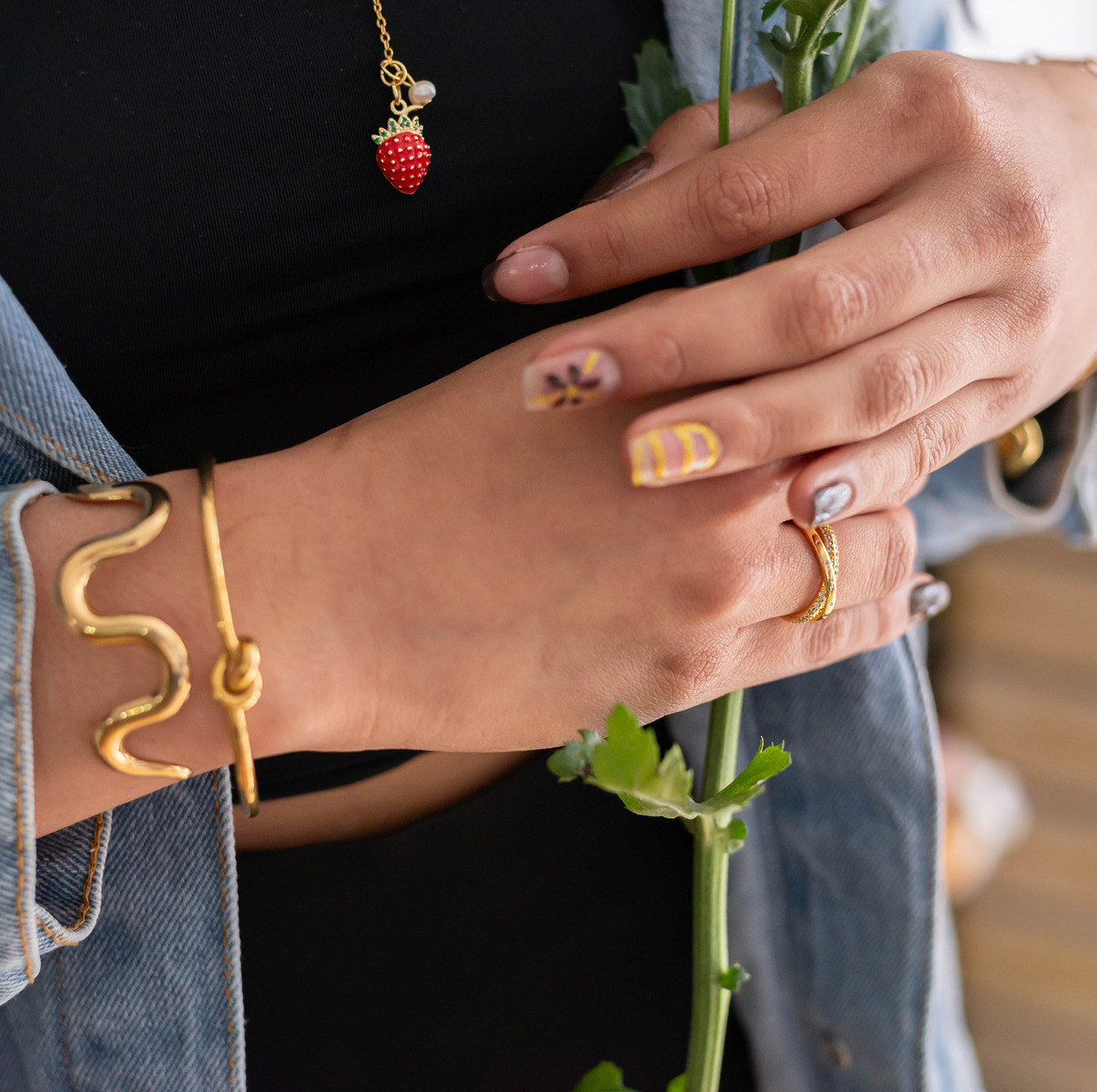 El Anillo Destino es una joya significativa y elegante que captura la esencia de tu camino único a través de un diseño en zigzag dinámico adornado con brillantes detalles. Fabricado en baño de oro, este anillo es ideal para quienes buscan un accesorio que simbolice crecimiento personal, resiliencia y la belleza de cada giro en la vida. Su diseño fluido con pavé de circonitas lo convierte en una pieza perfecta para complementar cualquier estilo, desde looks casuales hasta ocasiones especiales.